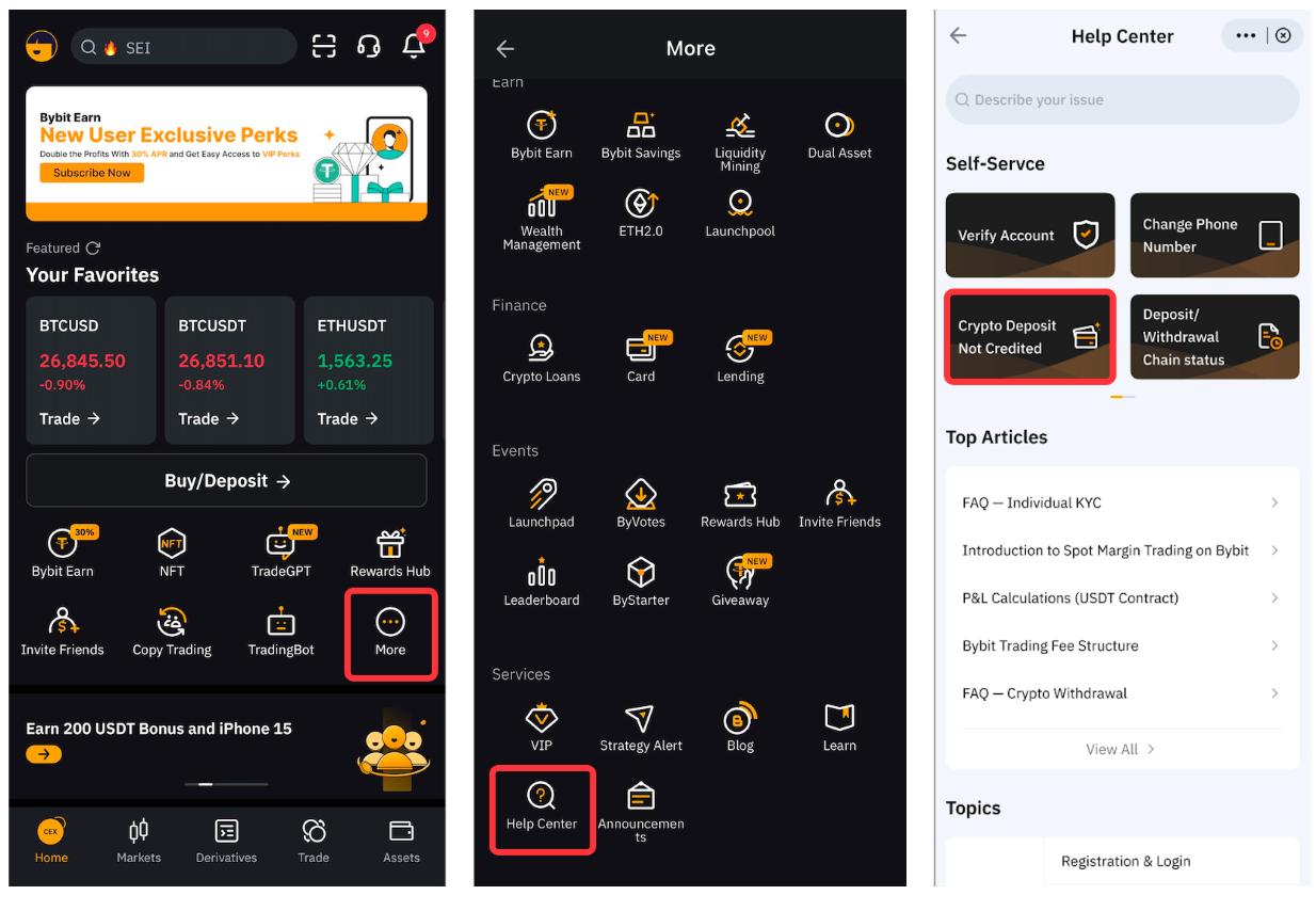 Si utiliza la aplicación Bybit, pulse en Más en la página de inicio y pulse en Centro de ayuda.