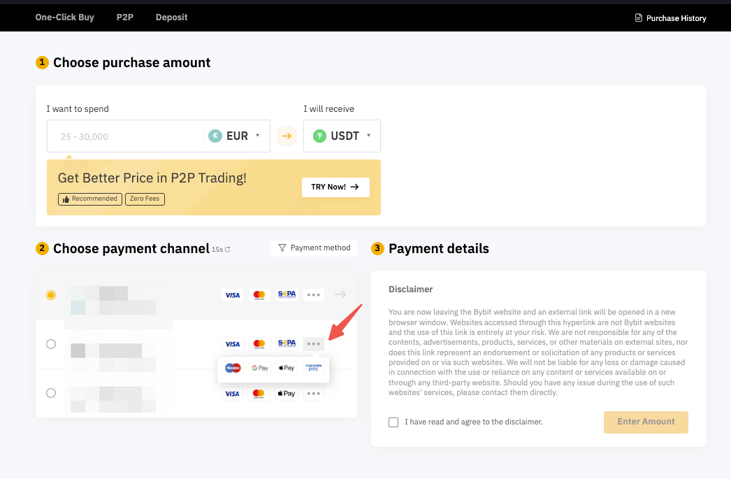 Чи існує мінімальний/максимальний ліміт транзакції, якщо я купую криптовалюту через стороннього постачальника послуг на Bybit?