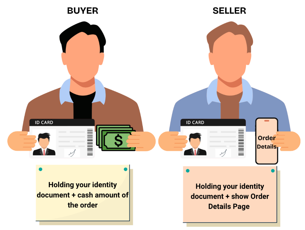 9. Bằng Chứng Thanh Toán: Giữ bằng chứng nhận thanh toán bằng tiền mặt, tức là ảnh trong đó cả hai bên đang giữ giấy tờ tùy thân tương ứng, tiền mặt liên quan đến giao dịch và trang chi tiết lệnh hiển thị rõ ràng ID lệnh, số tiền giao dịch và số tiền coin.