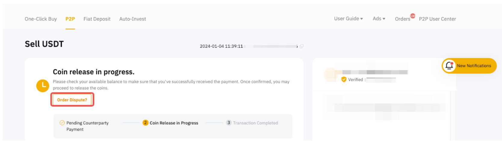 Vui lòng đảm bảo rằng bạn đã nhận được tiền từ người mua trước khi đánh dấu vào ô xác nhận và mở khóa coin của bạn. Nếu bạn chưa nhận được tiền, vui lòng chọn Tôi chưa nhận được khoản thanh toán bằng số dư khả dụng của mình và nhấp vào OK.