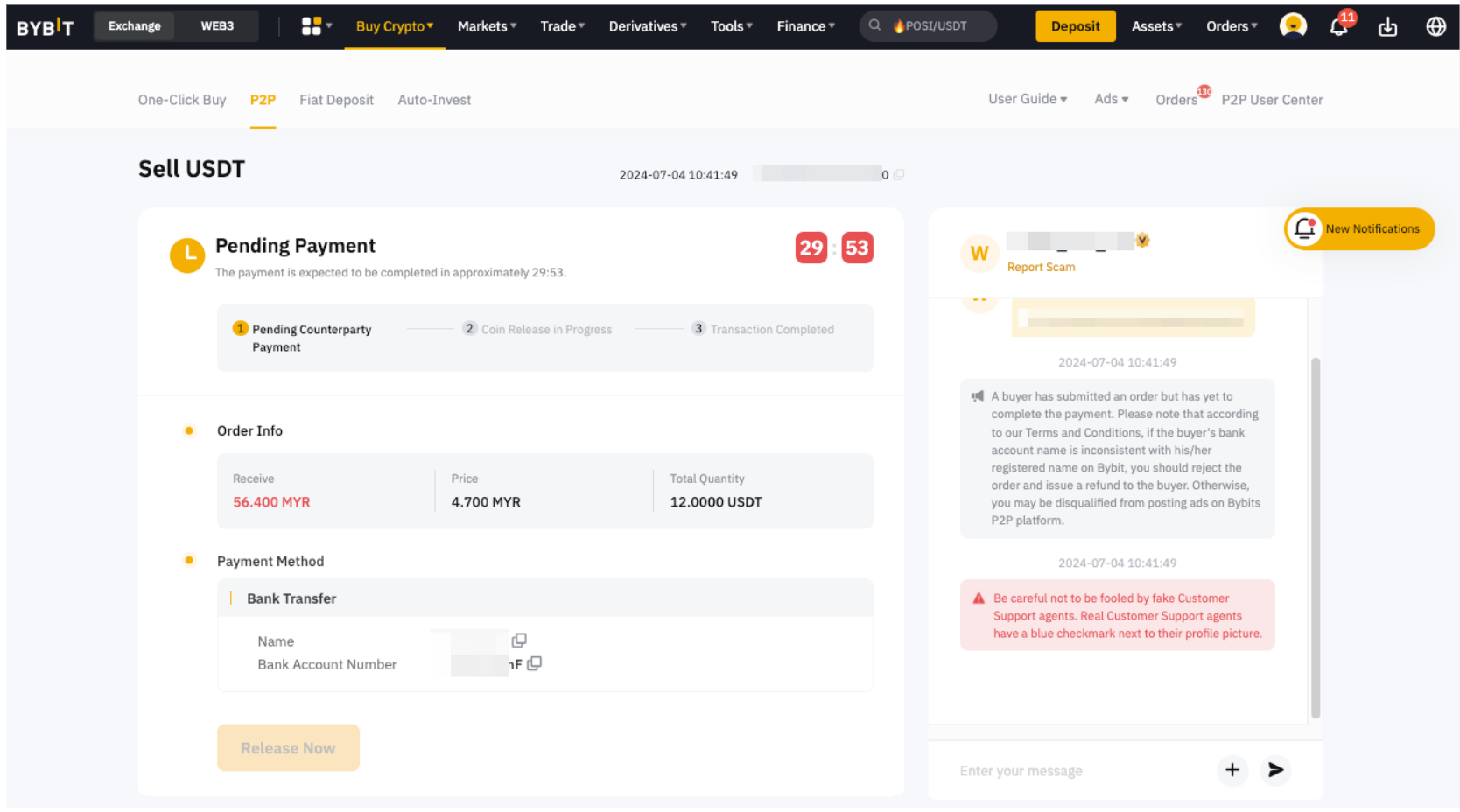 — Tên tài khoản ngân hàng của bạn phải phù hợp với tên đăng ký của bạn trên Bybit. Nếu không, tài khoản của bạn có thể bị tạm ngưng và người mua có quyền từ chối mua coin với bạn.