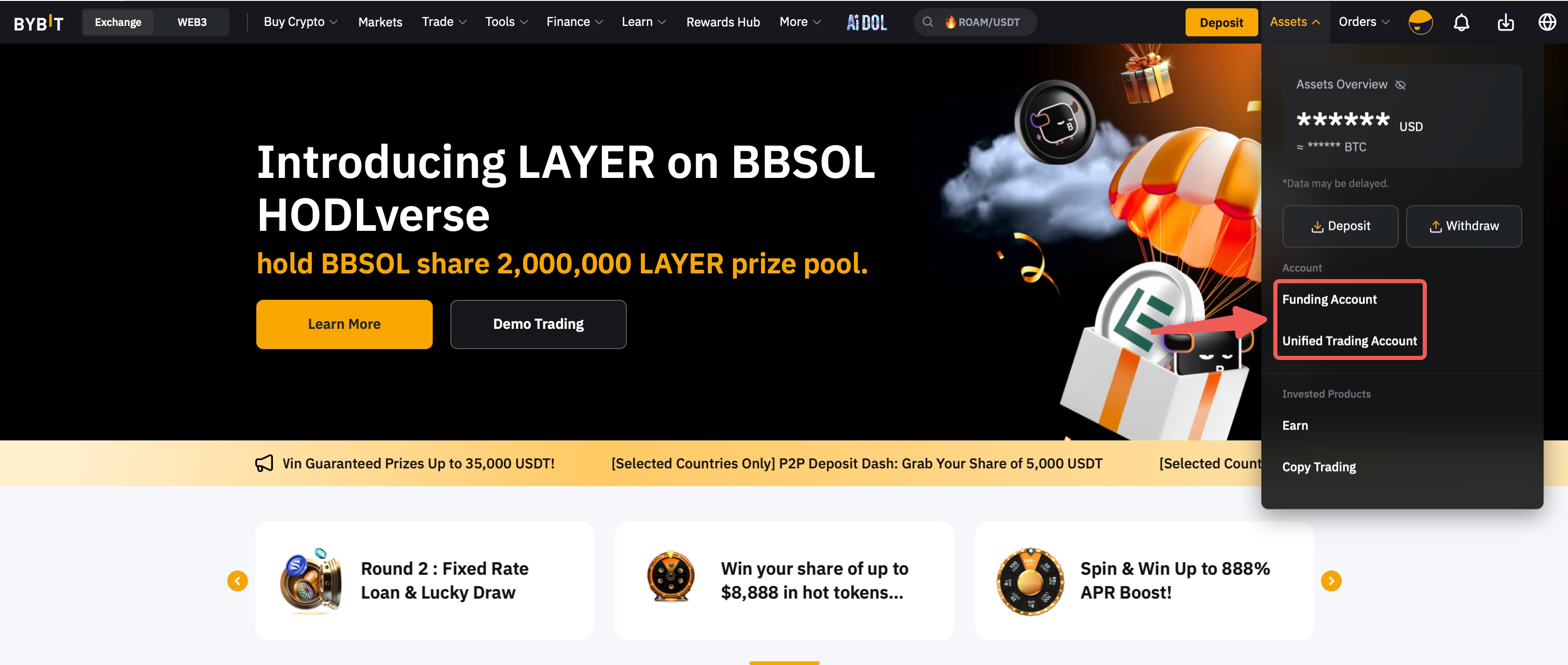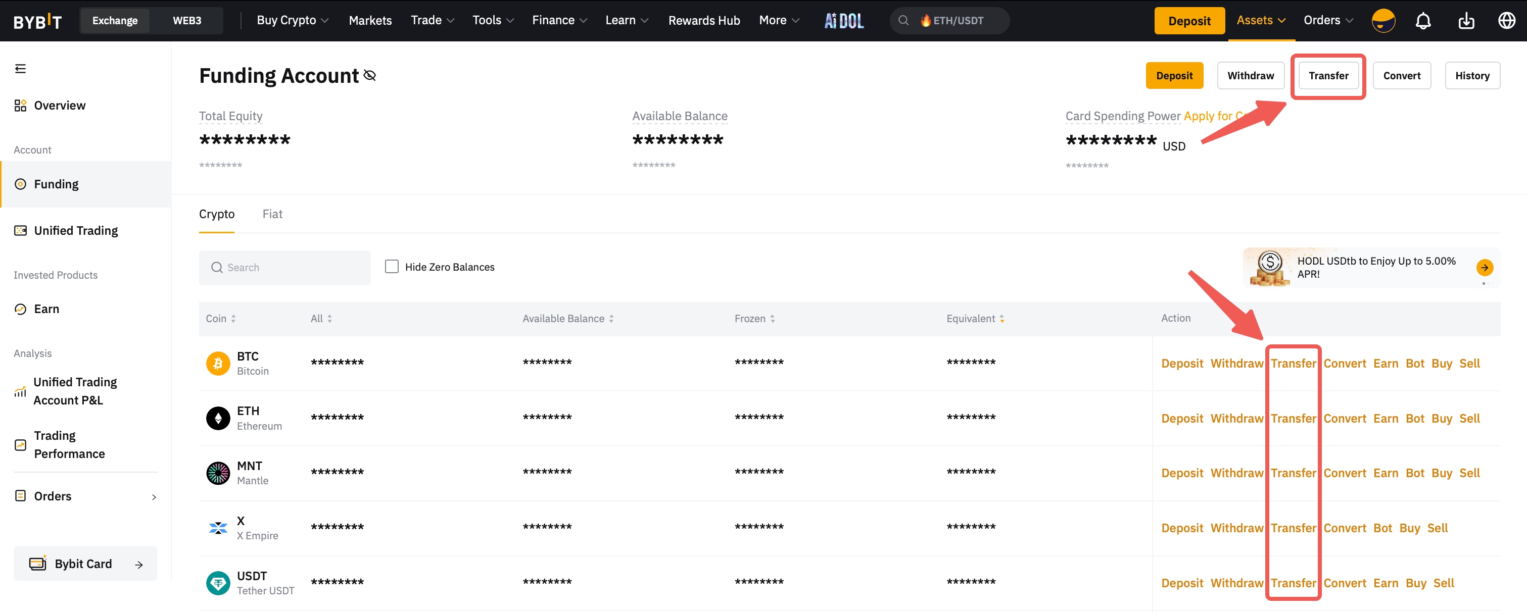 Sau đây là hướng dẫn chi tiết giúp bạn chuyển tài sản giữa Tài Khoản Funding và Tài Khoản Giao Dịch Hợp Nhất trên Bybit.