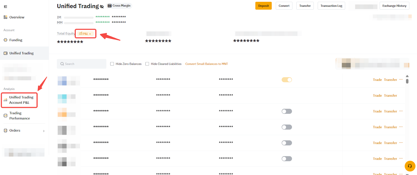 على موقع الويب، يمكنك الانتقال إلى صفحة أصول التداول الموحد والنقر فوق صفحة الربح والخسارة حساب التداول الموحد.