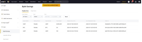 كما يمكنك كسب فائدة تراكمية على توفيرك المرن (غير متاح مباشرة على صفحة ادخارات Bybit) من خلال تفعيل الخصم التلقائي على لوحة تحكم بطاقة Bybit!