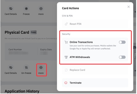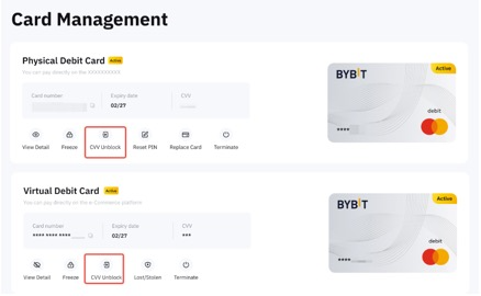 ○ تجميد / إلغاء تجميد بطاقة Bybit