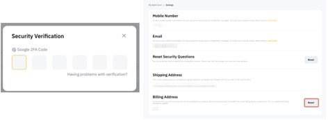 الخطوة 2: بعد التحقق من حسابك باستخدام المصادقة الثنائية 2FA، انقر على إعادة تعيين تحت عنوان الفواتير.