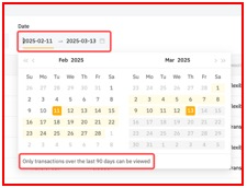 يرجى ملاحظة أن تبويب جميع المعاملات يمكنه عرض سجلاتك فقط في إطار زمني يبلغ 90 يومًا. إذا كنت ترغب في عرض المعاملات القديمة، يرجى التوجه إلى علامة التبويب التاريخ.