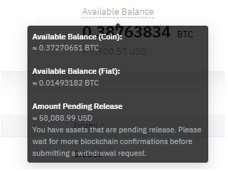الرصيد المتاح يظهر المبلغ الذي يمكن تحويله أو استخدامه لأي غرض آخر. المبلغ المعلق للإفراج يشمل الودائع المقفلة المعلقة لتأكيد الشبكة أو مراجعة الرقابة المخاطرية.