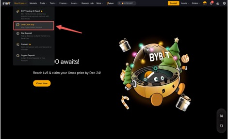 الخطوة 1: انقر على شراء العملات الرقمية → الشراء بنقرة واحدة في الزاوية اليسرى العلوية من شريط التنقل للدخول إلى صفحة الشراء بنقرة واحدة .