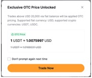 — يرجى ملاحظة أن تسعير OTC ينطبق فقط على تحويل العملات الرقمية بين USDT، USDC، ETH، BTC و MNT. لمزيد من المعلومات حول التداول OTC، يرجى الرجوع إلى الأسئلة الشائعة — تداول OTC.