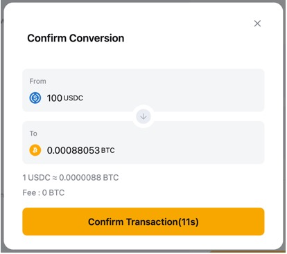 ● فوري الوضع: سيتم تحويل أصولك فوراً بالسعر المقتبس المعروض على الصفحة بمجرد تأكيد الصفقة.