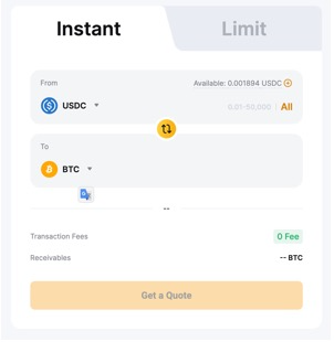 الخطوة 2: في صفحة تحويل، اختر إما فوري أو وضع تحديد لتحويل أصولك.