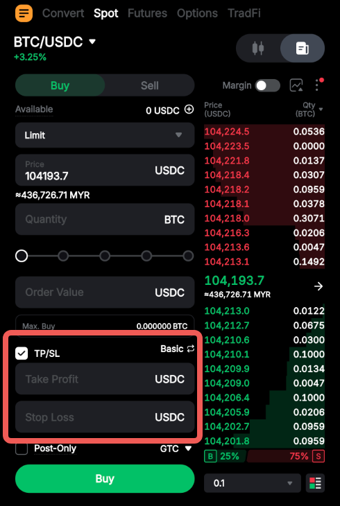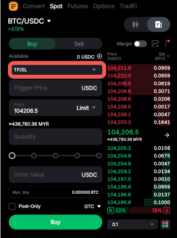 Take Profit and Stop Loss (Spot Trading)