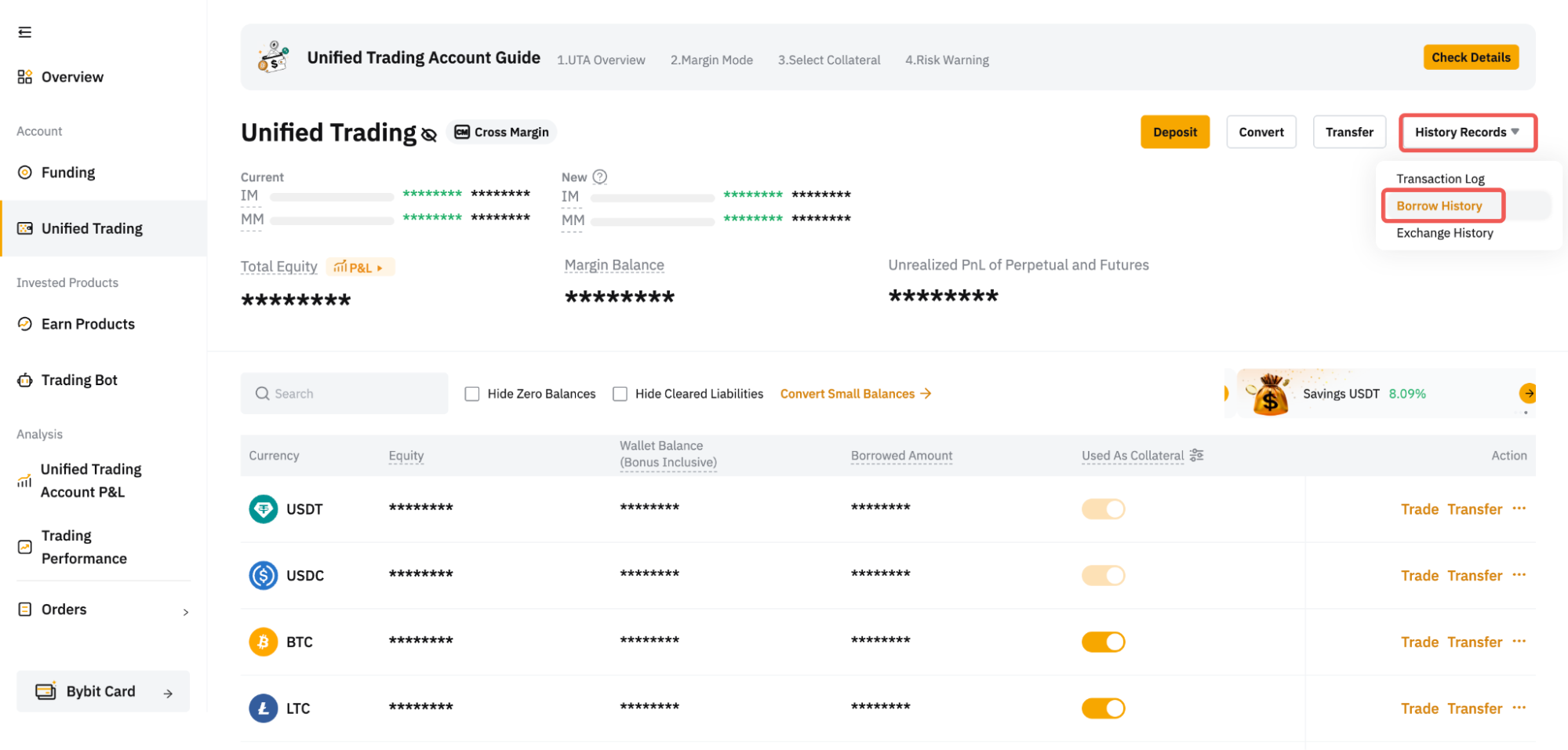 Borrow directly from the Spot Margin Trading page or the Unified Trading Account (UTA) asset page. |