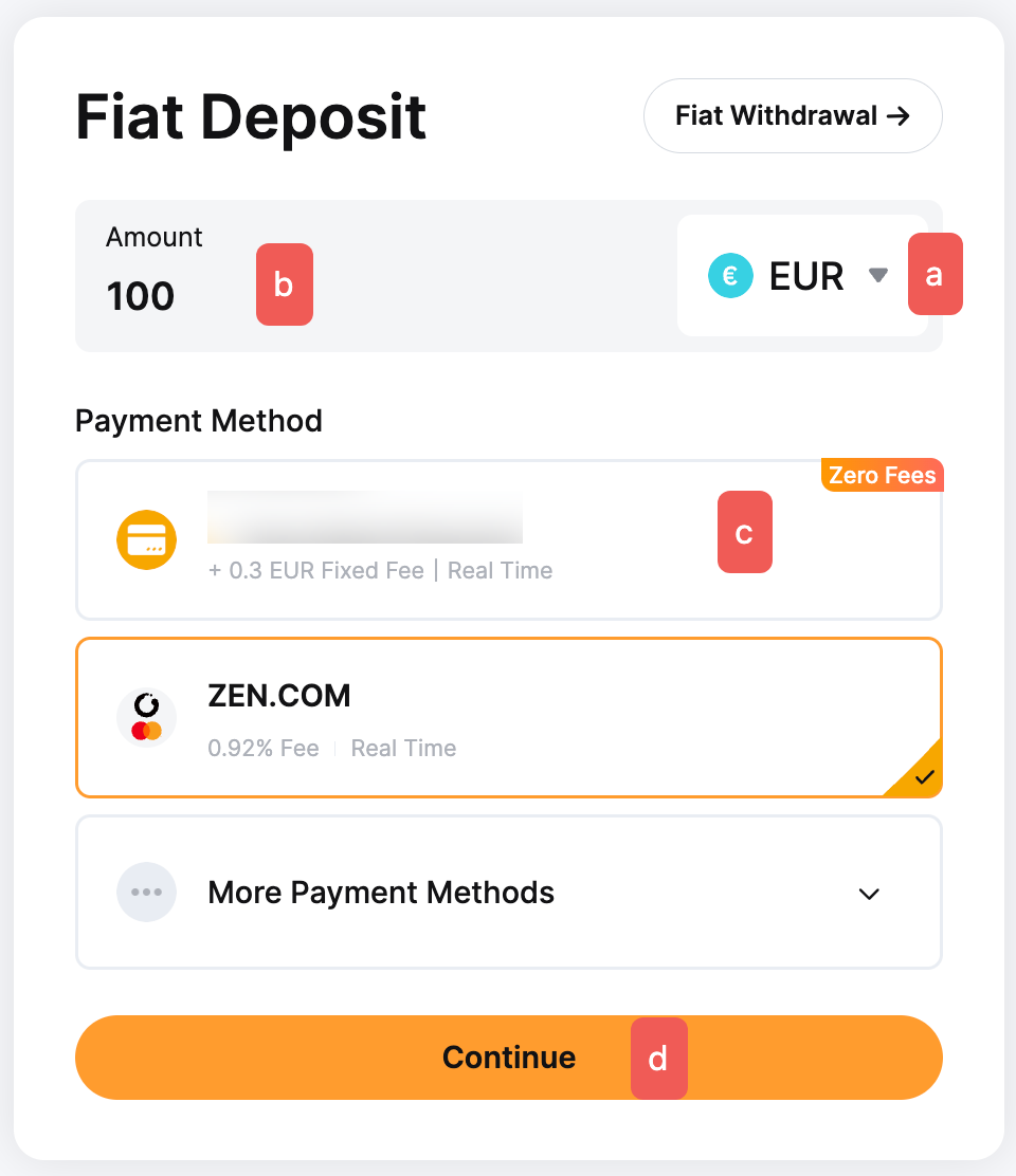 2. Some fiat payment methods will only be available for withdrawal once you have made an initial fiat deposit to your account and not all fiat supported for deposit will be available for withdrawal. You can find more details about the supported fiat currencies and the requirements for each payment method for withdrawal here.