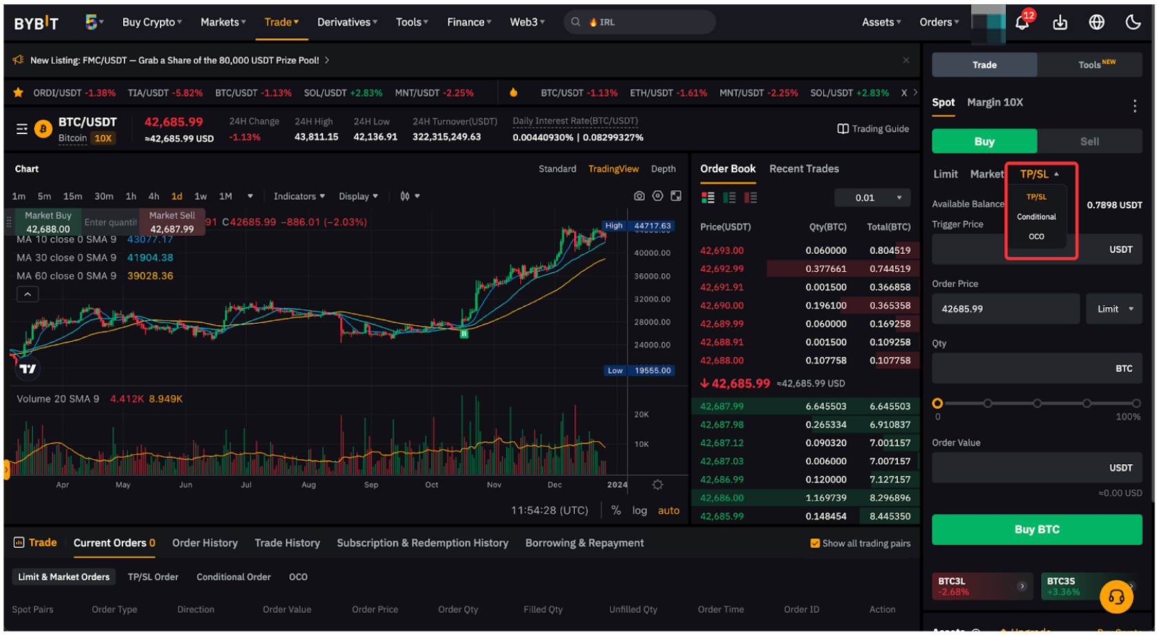 Bybit Spot Trading provides you with various order types. To learn more about the differences between each order type, please refer to Types of Orders Available on Bybit.