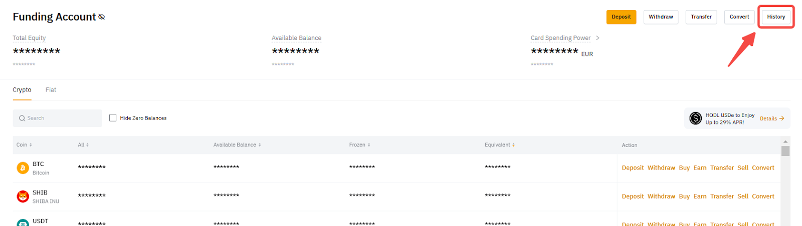 Step 1: Click on Funding Account → History → History → Deposit to find your deposit history.
