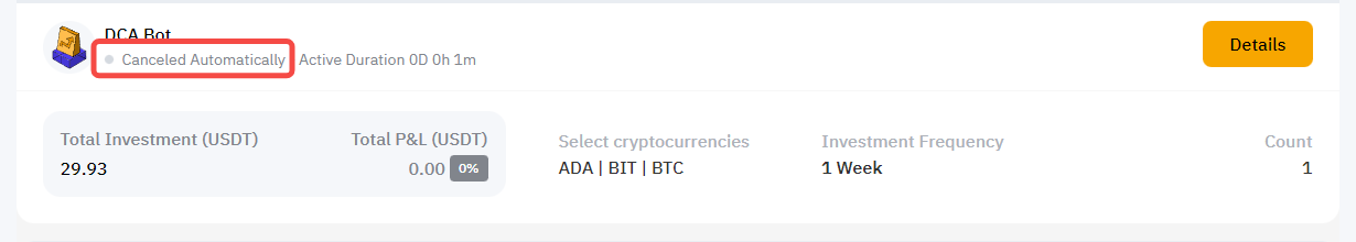 Mengapa bot DCA saya dibatalkan secara otomatis?