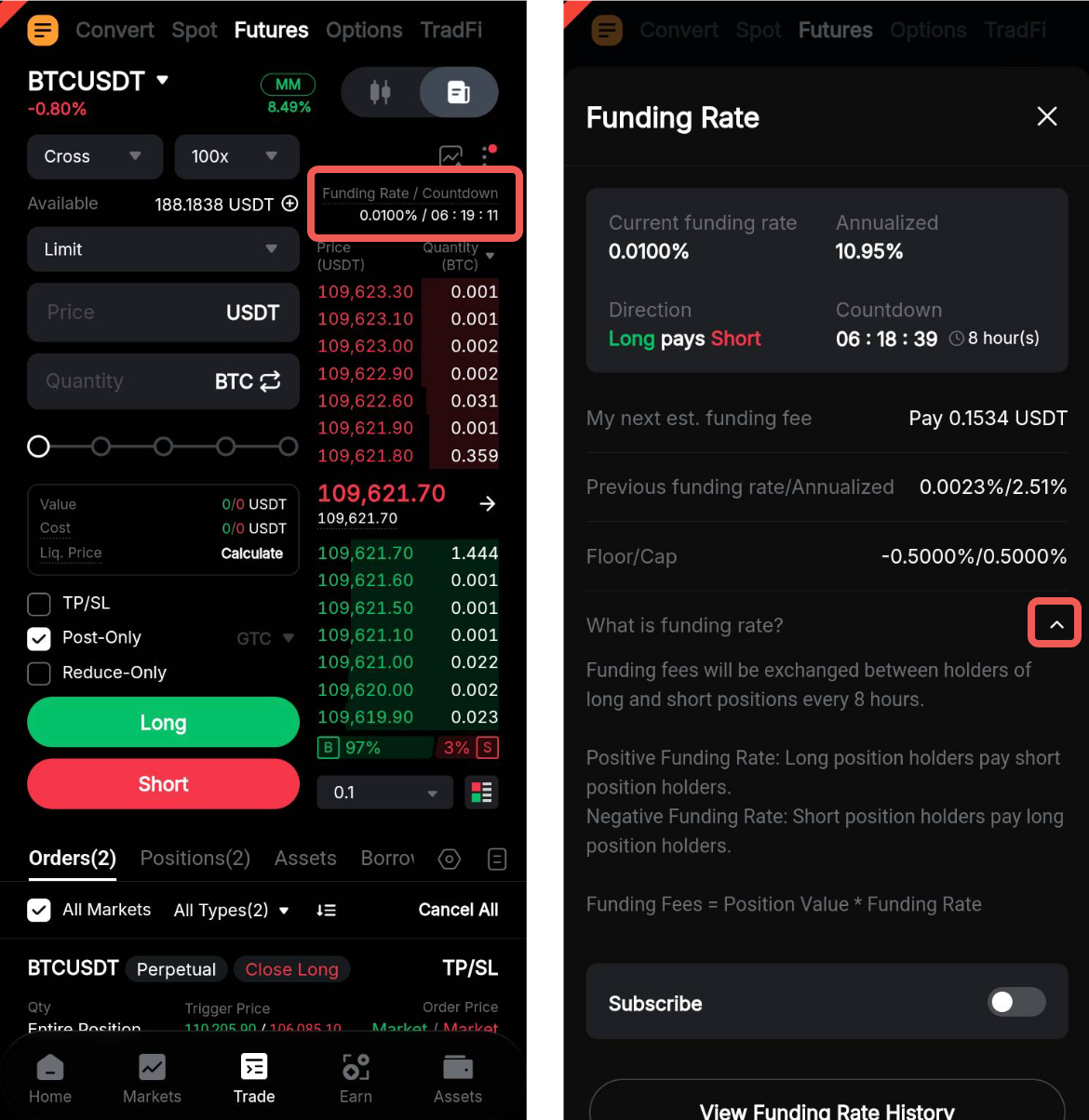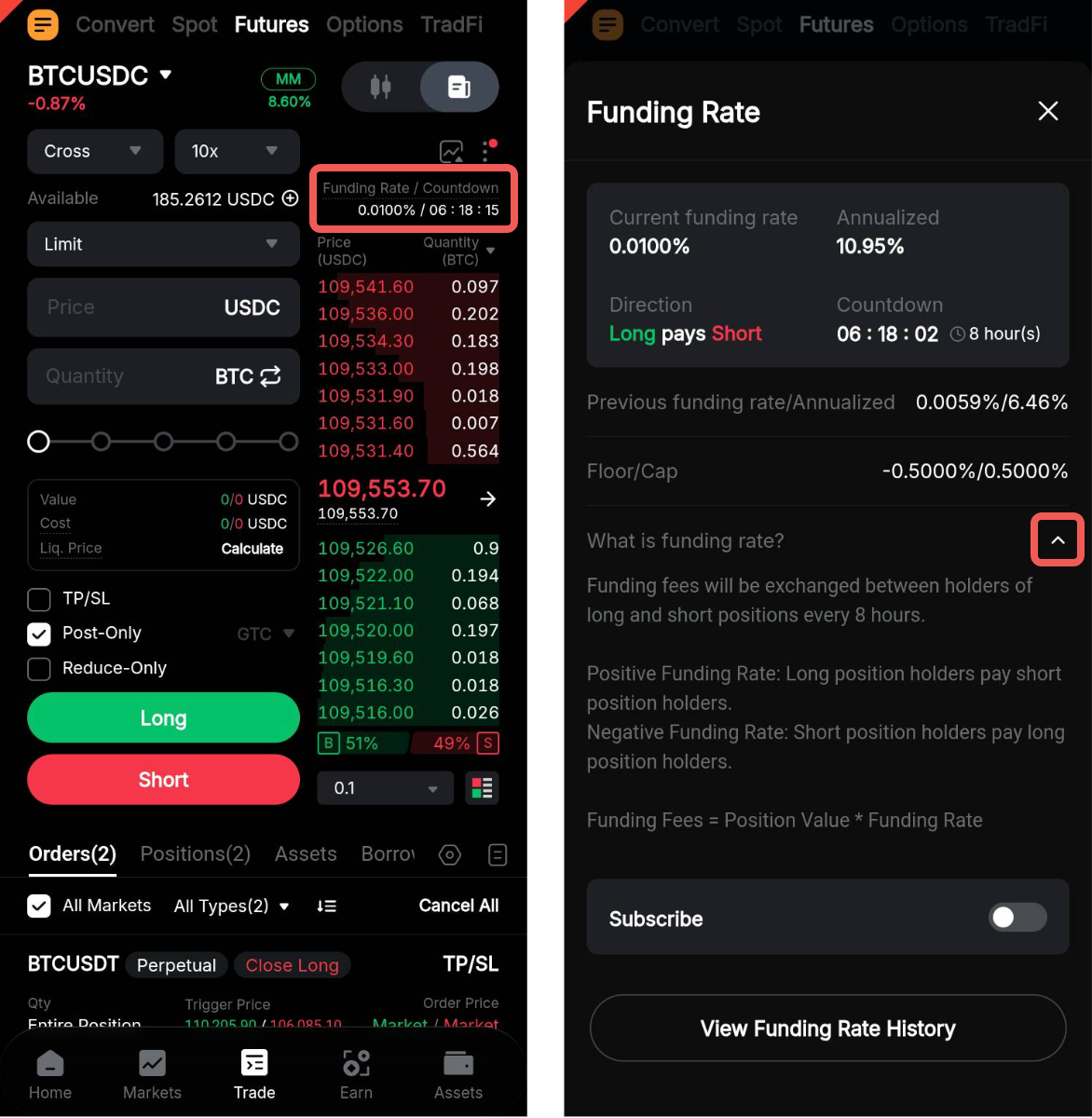 Jika tingkat pendanaan Kontrak Perpetual mencapai batas atas atau bawah yang telah ditetapkan selama penyelesaian, sistem akan secara otomatis beralih frekuensi penyelesaian menjadi sekali per jam untuk lebih mencerminkan kondisi pasar secara waktu nyata. Batas tingkat pendanaan dan frekuensi penyelesaian di masa mendatang dapat disesuaikan secara dinamis tanpa pengumuman terpisah.
