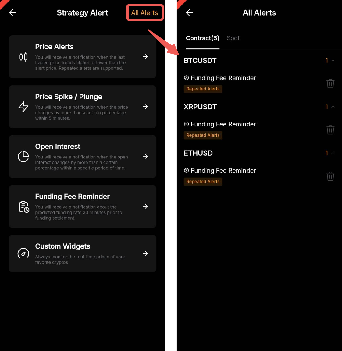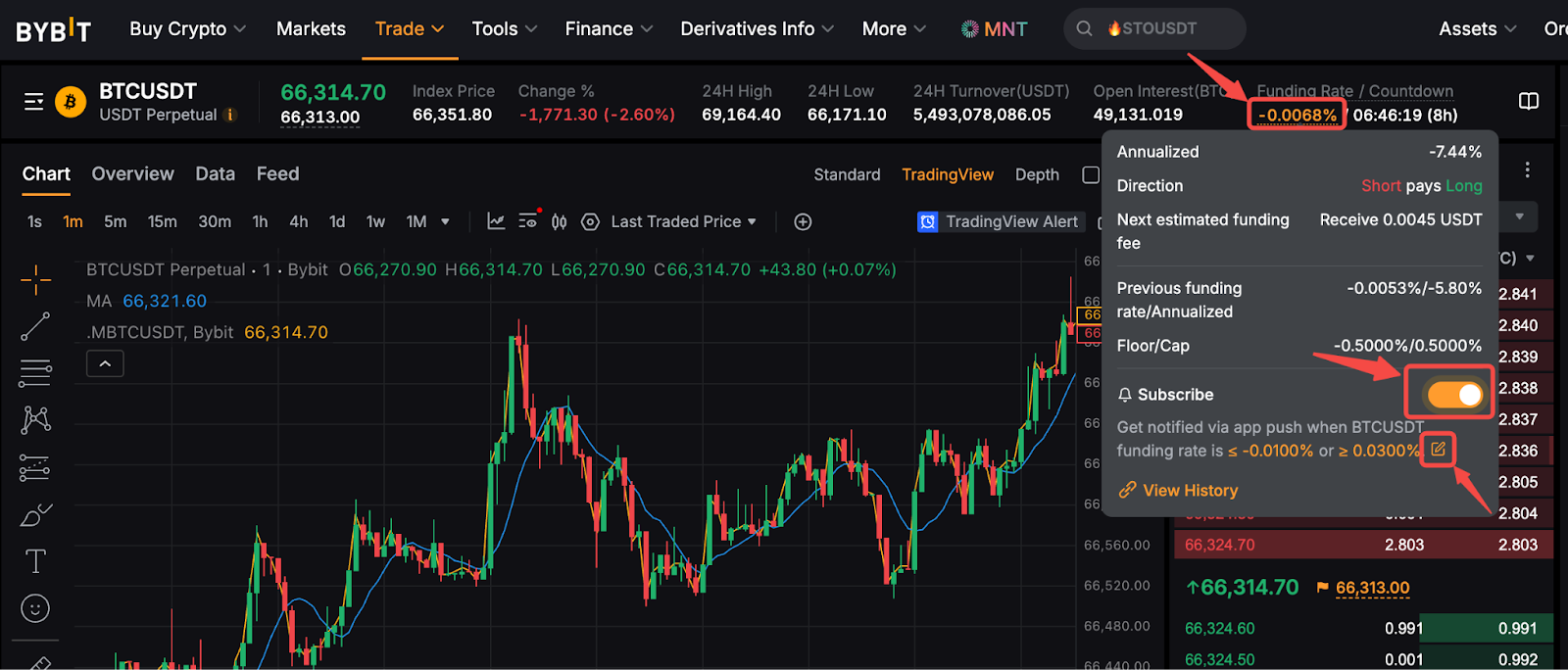 Anda dapat mengaktifkan Pengingat Biaya Pendanaan untuk menerima notifikasi push tentang prediksi tingkat pendanaan 30 menit sebelum waktu pendanaan. Saat ini, fitur ini hanya tersedia di Aplikasi Bybit.