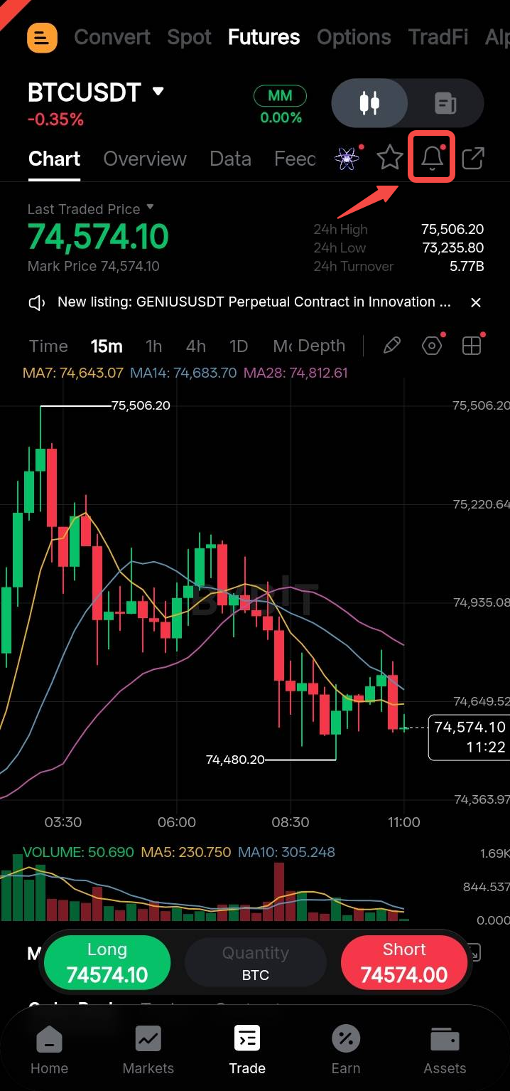 Langkah 1: Buka Trade dan ketuk ikon notifikasi (lonceng) di sudut kanan atas.