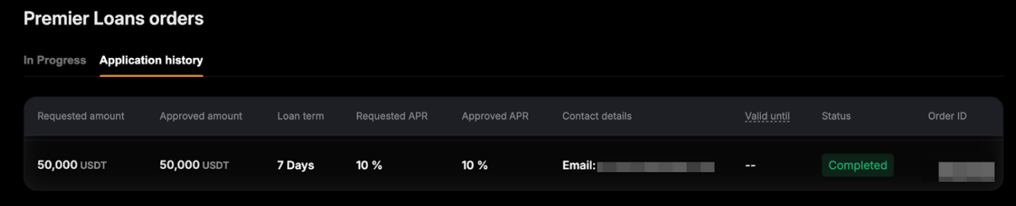 Langkah 3: Permintaan pinjaman Anda telah berhasil diajukan. Klik Lihat Pesanan untuk menuju dasbor Pinjaman Kripto , di mana Anda dapat memeriksa Status pesanan pinjaman Anda.