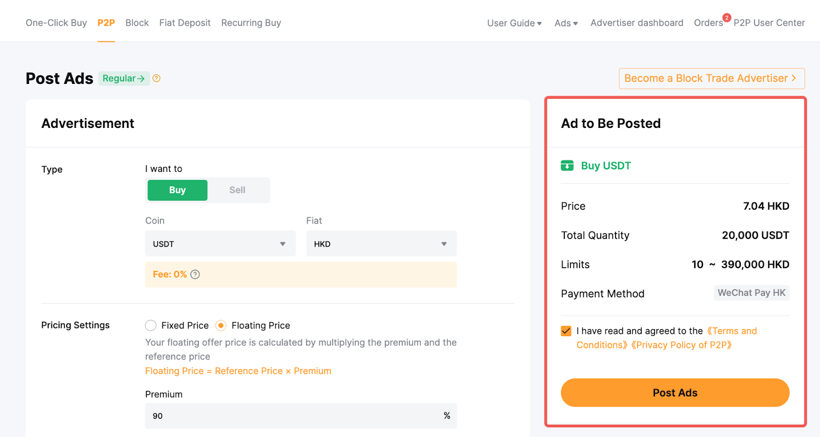 Langkah 2: Di sudut kanan atas laman perdagangan P2P, klik IklanPosting Iklan Saya.