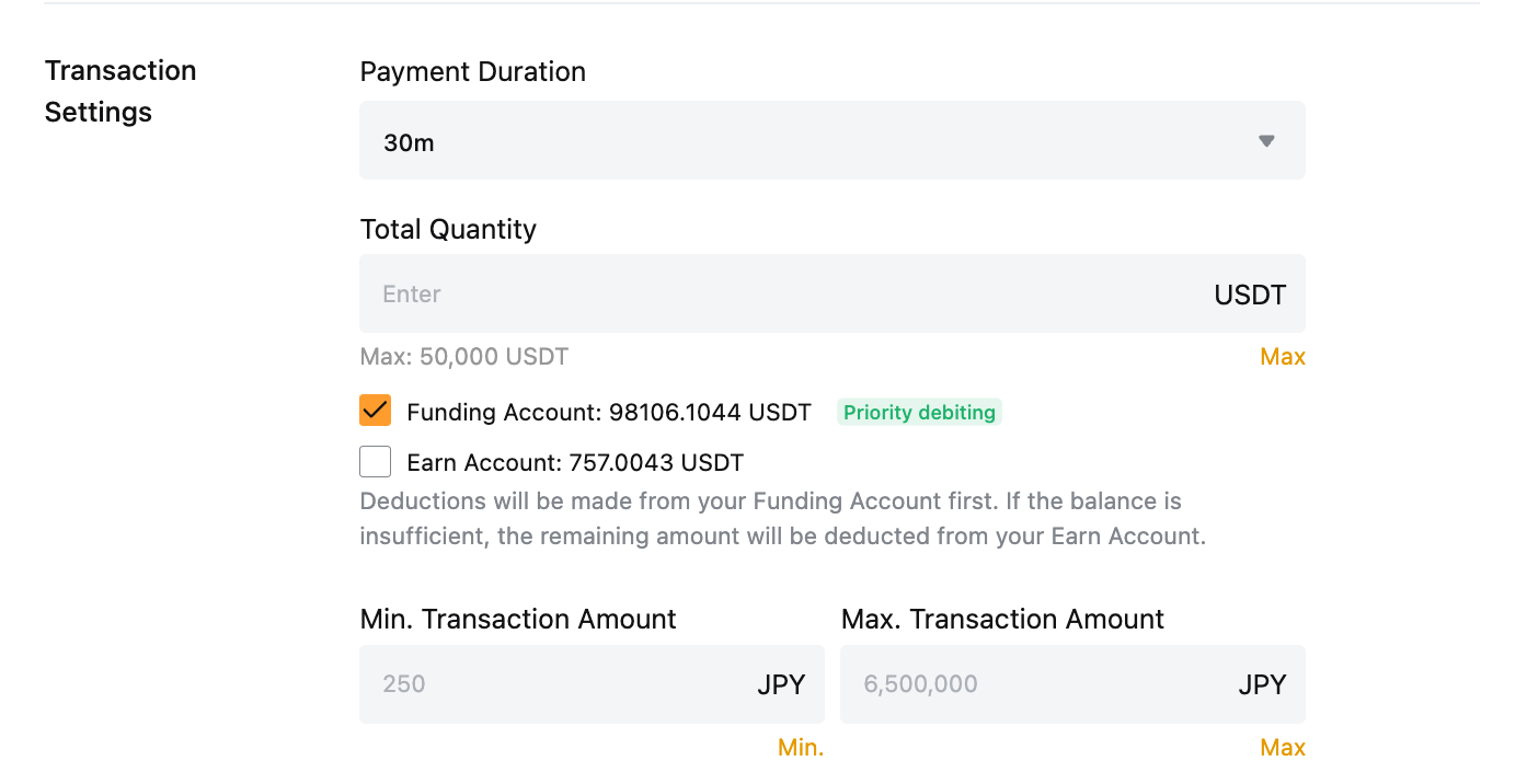 2. Untuk mempelajari lebih lanjut tentang jumlah minimum dan maksimum USDT yang dapat diperdagangkan per iklan, silakan lihat Batas Pesanan P2P.