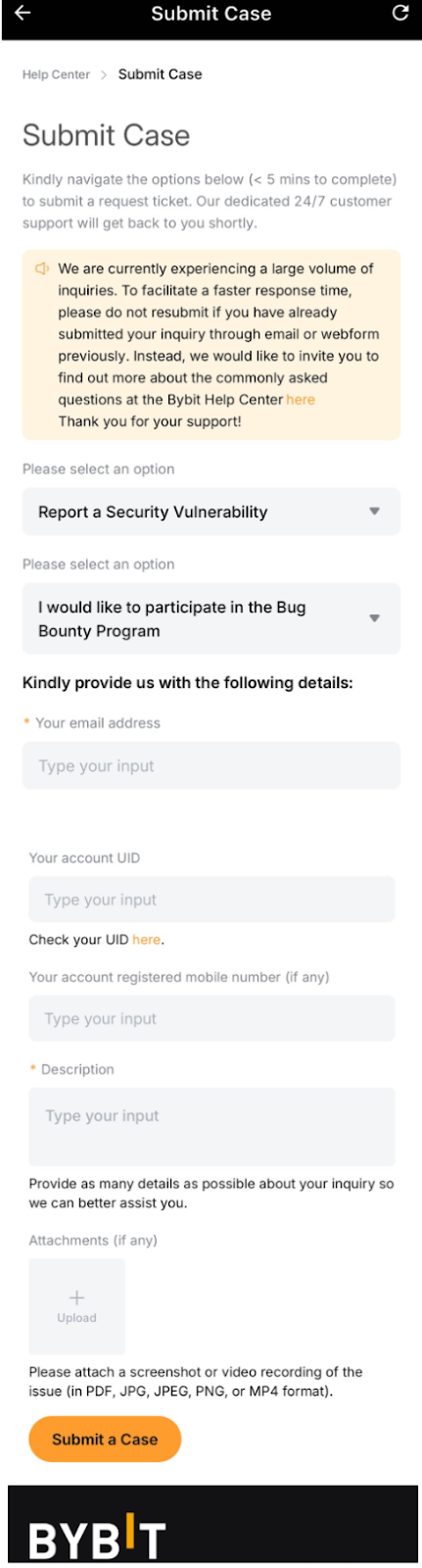Bybit menyediakan cara yang sederhana dan nyaman bagi pengguna untuk mengirimkan pertanyaan dan menerima dukungan. Ikuti langkah-langkah di bawah ini untuk memastikan proses yang lancar dan penyelesaian pertanyaan Anda tepat waktu.