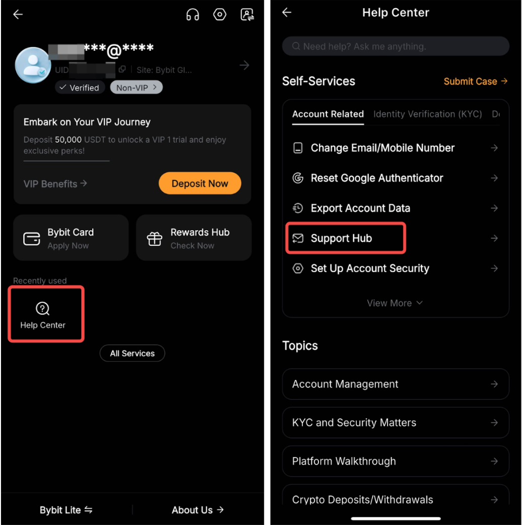 Langkah 1: Kunjungi Pusat Bantuan Bybit dan klik Pusat Dukungan.