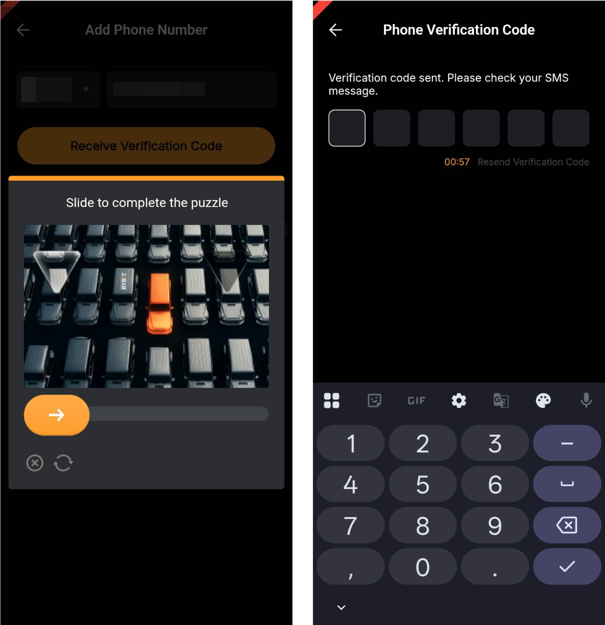 Langkah 4: Selesaikan verifikasi Captcha lainnya, dan kode verifikasi akan dikirimkan ke nomor telepon Anda untuk menautkan ponsel Anda ke akun Bybit Anda.