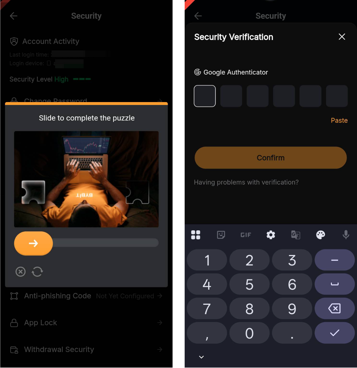 Langkah 2: Selesaikan verifikasi Captcha interaktif, dan masukkan kode verifikasi Google 2FA Anda untuk melanjutkan ke langkah berikutnya.