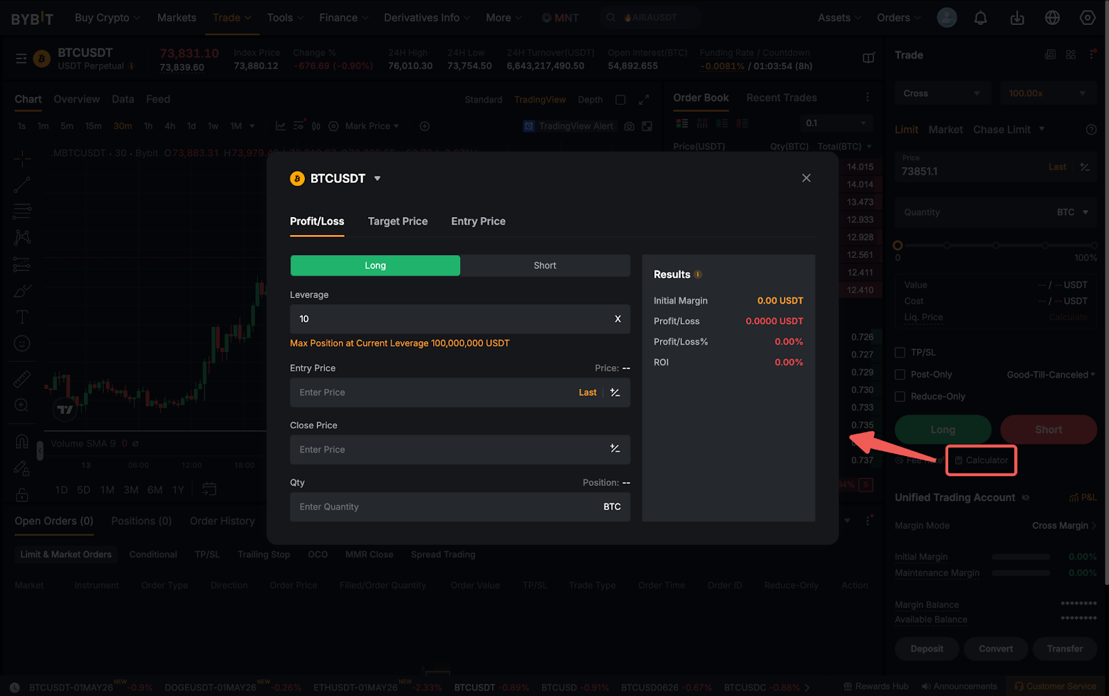 Trader dapat menggunakan kalkulator Bybit untuk menentukan perkiraan L&R, Target Harga, Harga Lik. (hanya untuk Akun Standar), dan Rata-Rata Harga Masuk dari kemungkinan trading mereka. Anda dapat merujuk ke Kalkulator Bybit untuk informasi selengkapnya.