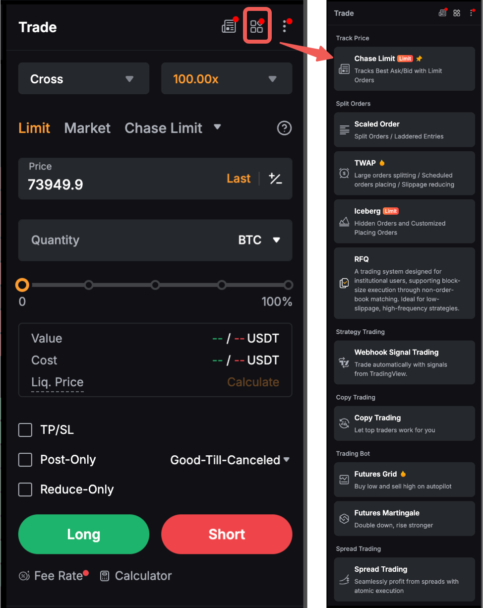 Untuk informasi lebih lanjut tentang cara membuat pesanan, silakan merujuk ke Cara Mulai Trading Futures (Perpetual dan Kedaluwarsa).