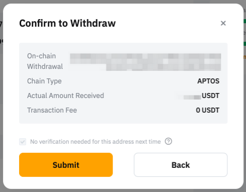 — Jika alamat Anda diverifikasi dalam Daftar Putih Alamat Penarikan, Anda tidak perlu melalui proses verifikasi 2FA, dan Anda dapat mengirimkan permintaan penarikan seperti di bawah ini. Untuk memverifikasi alamat dompet penarikan, Anda dapat mengikuti panduan ini.