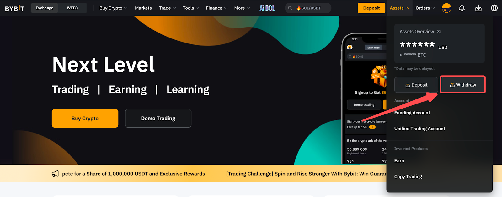 Berikut adalah panduan langkah demi langkah untuk membantu Anda mengajukan permintaan penarikan on-chain. Untuk penarikan melalui transfer internal, Anda dapat melihat di sini.