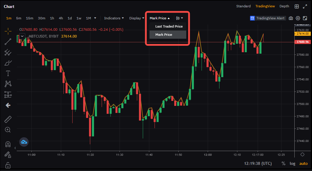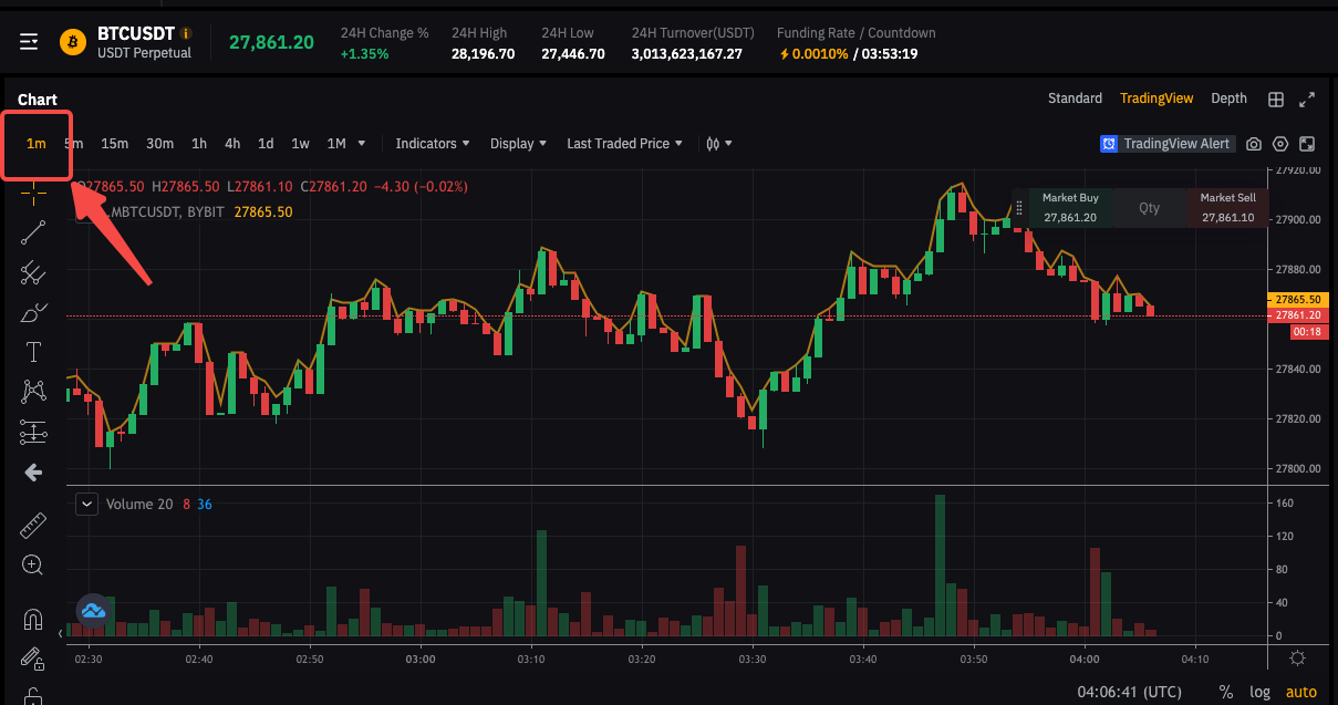 Metode 2: Pada grafik LTP, ambil BTCUSDT sebagai contoh, dan perhatikan indikator MBTCUSDT, BYBIT.