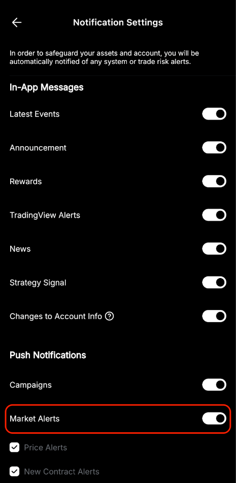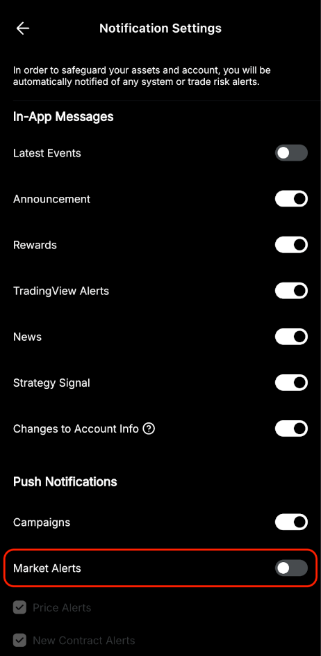 アプリからBybitのマーケットアラートをオフにするにはどうすればよいですか?