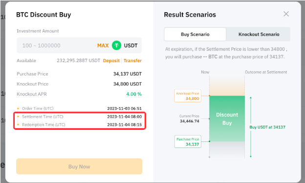 ノックアウトシナリオにおいて、トレーダーは元本に加えて、最終的な利益として追加APR(USDT)を受け取ります。
