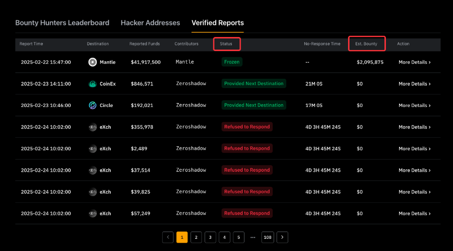 ボーナスは、リードが資金の凍結に成功した場合にのみ付与されます。レポートのステータスと推定報奨金は、検証済みレポートページから確認できます。