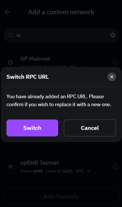 — 追加したいネットワークがBybit Walletにすでに存在する場合、カスタムウォレットとして再度追加することはできません。