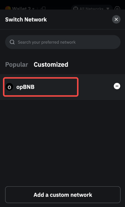 ステップ1:拡張機能のネットワークをクリックしてください。 ポピュラータブでは、デフォルトでBybitウォレットに追加されたすべてのネットワークが表示され、カスタマイズタブにはウォレットに追加したすべてのカスタムネットワークが表示されます。
