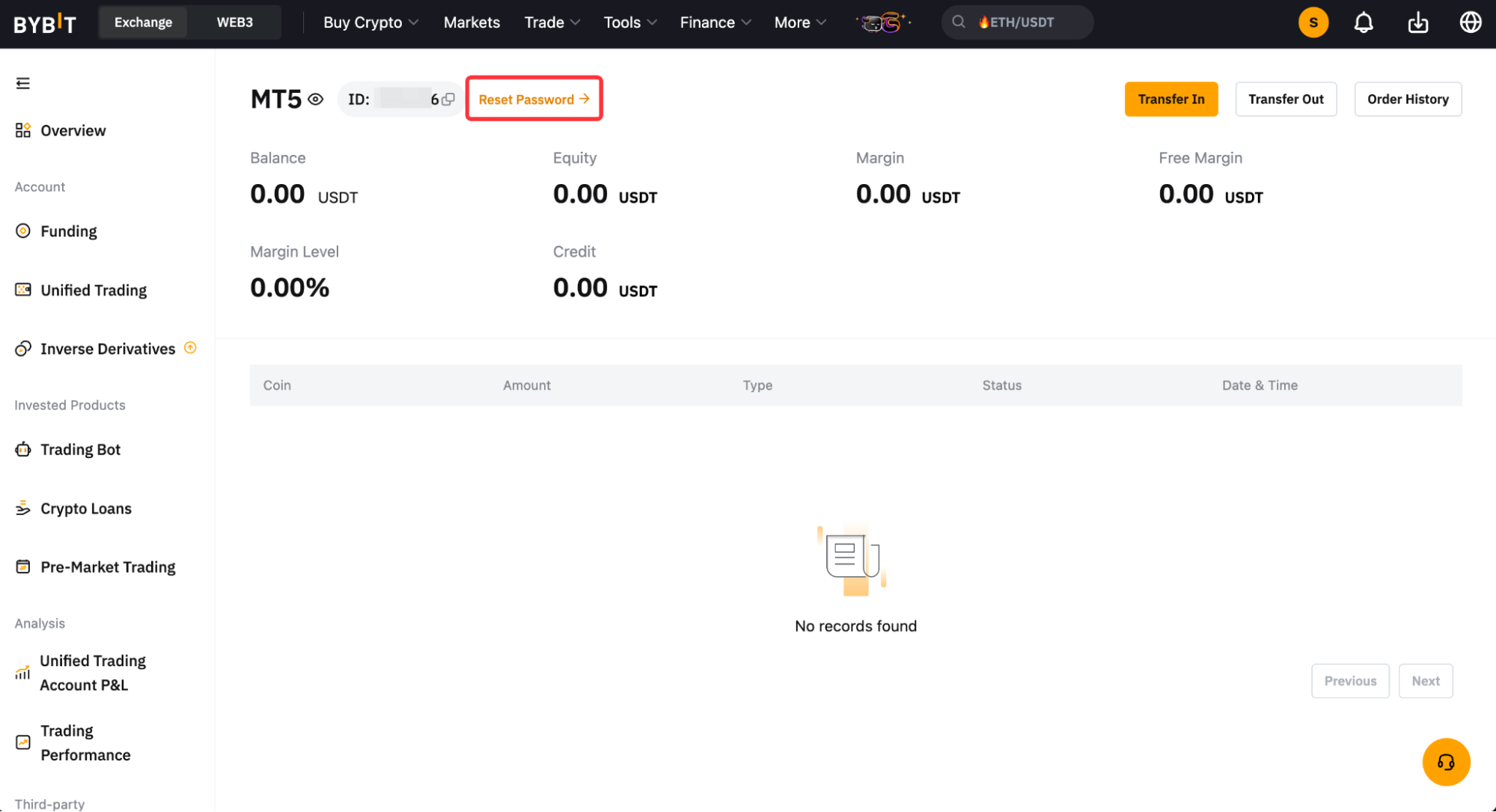 • MT5読み取り/書き込みパスワードをリセット:すべてにアクセス可能なマスターパスワードです。