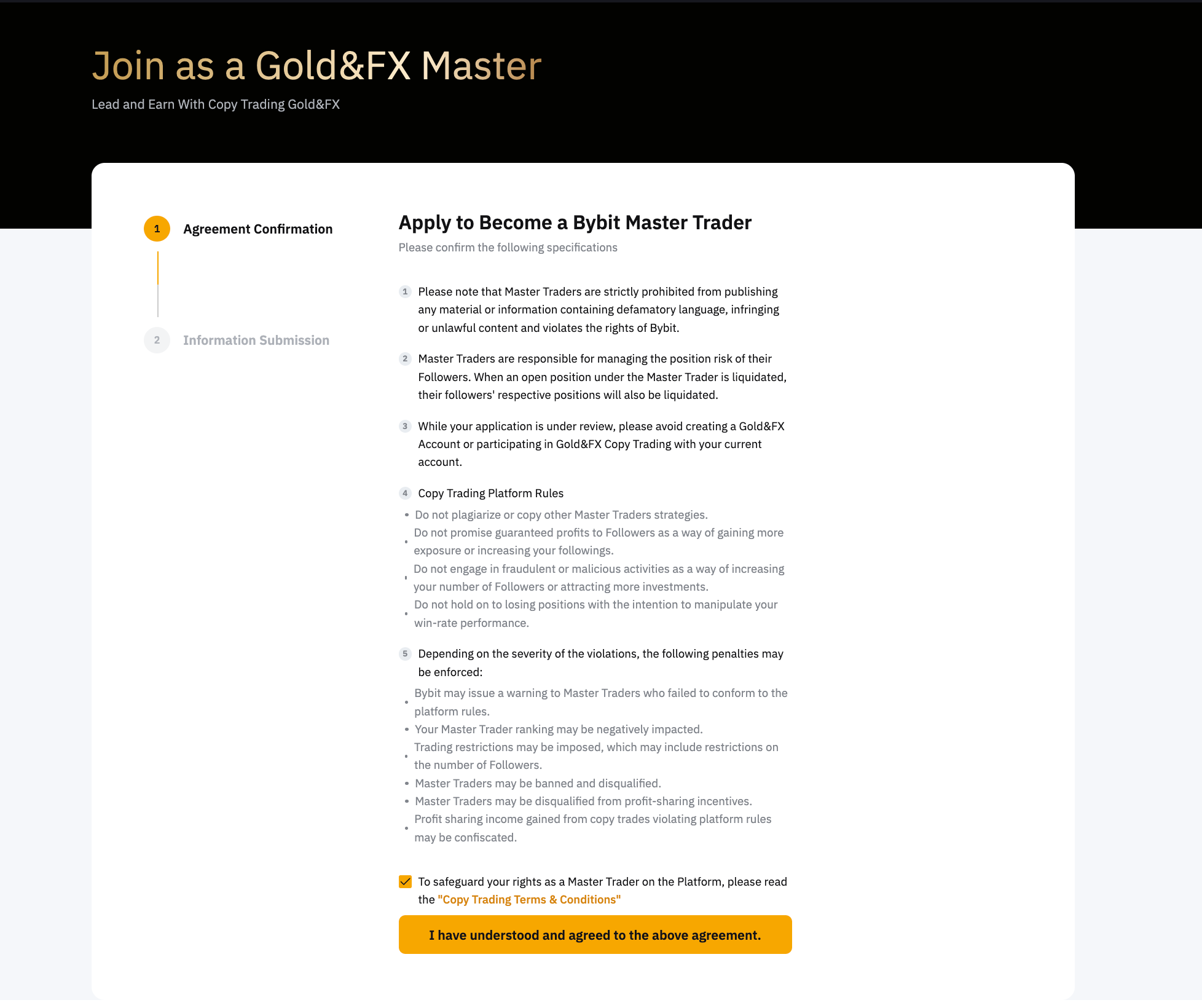 5. マスタートレーダー契約をお読みください:申し込みの前に、ご自身の責任と違反が成立する条件を十分にご理解ください。