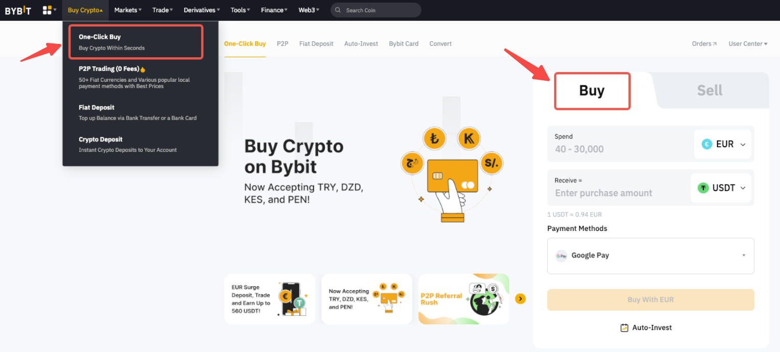 ステップ1:暗号資産を購入 → ナビゲーションバーの左上隅にあるワンクリック購入をクリックして、購入機能ページに移動します。