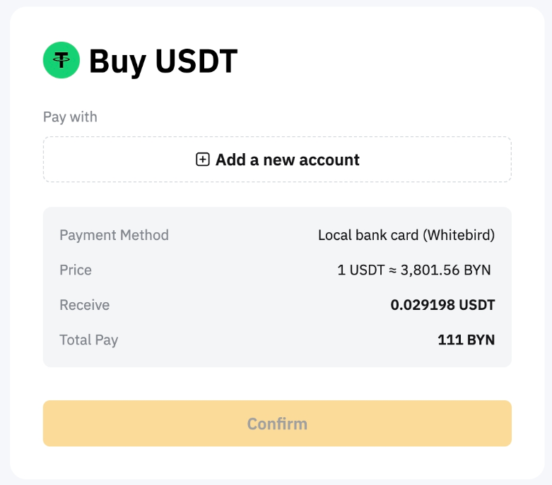 現在、Whitebirdがサポートしている通貨はRUBとBYNのみです。