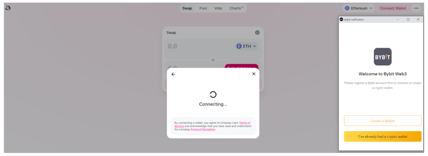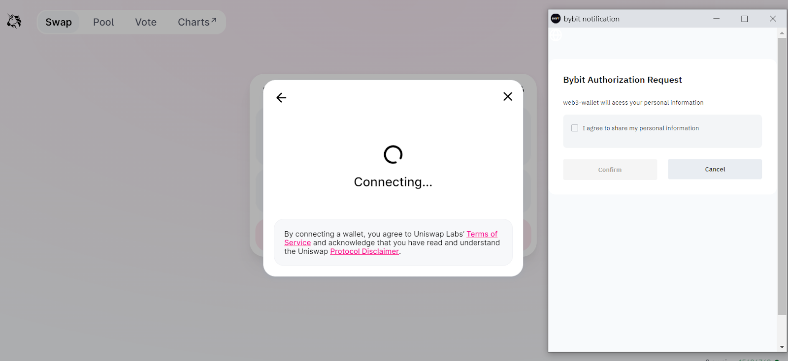 ステップ3:Bybit WalletがUniswapに接続中です。
