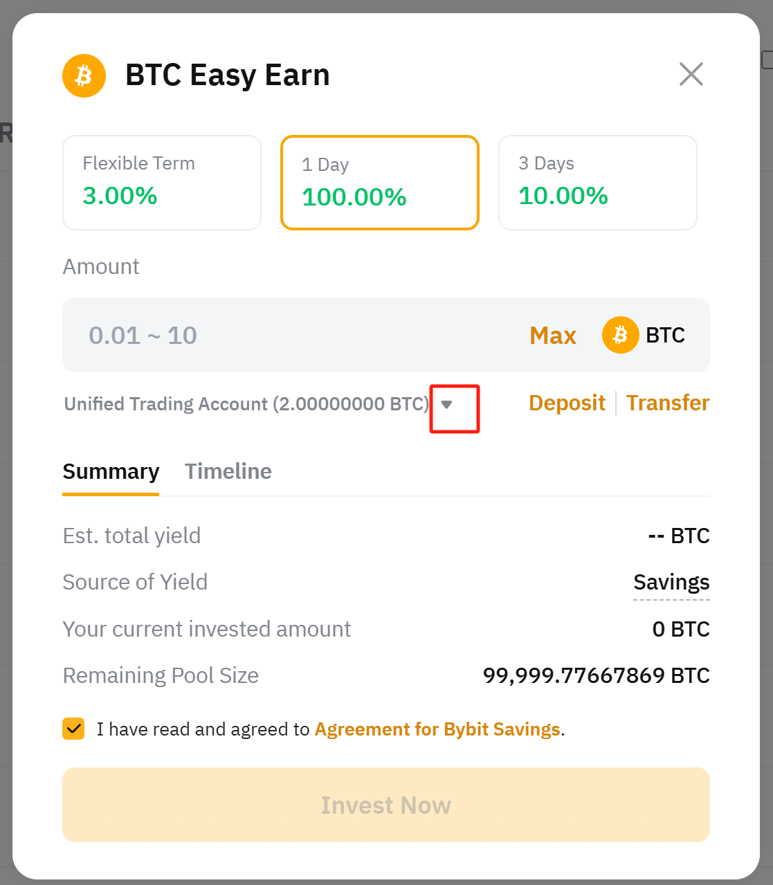 ステップ2:通貨、期間、APRに基づいて、ご希望のかんたん資産運用プランを選択し、「今すぐ投資」をクリックします。