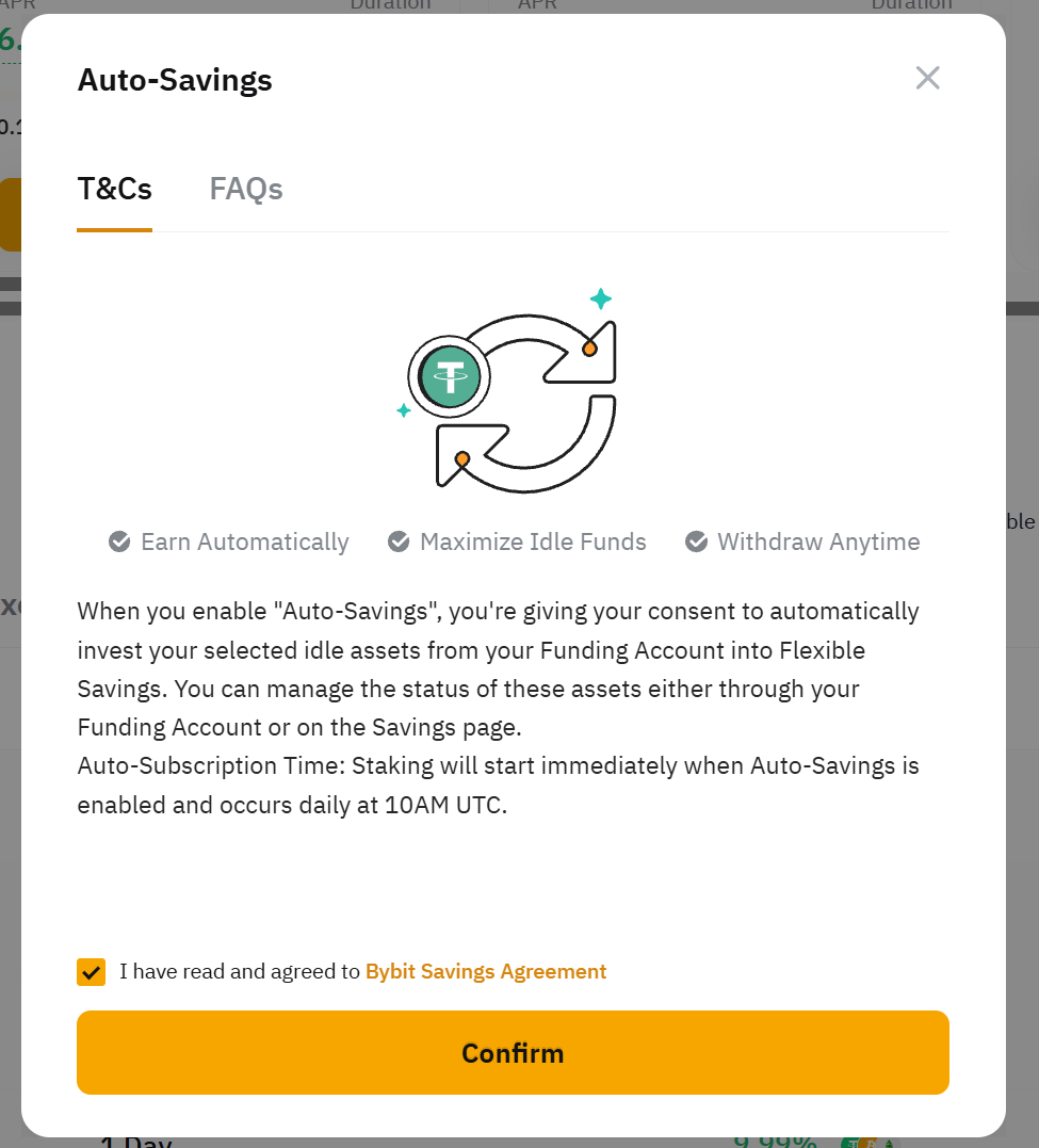 ステップ2:自動資産運用の詳細をよく読み、同意チェックボックスにチェックを入れます。詳細については、「よくある質問」タブをクリックして確認することもできます。
