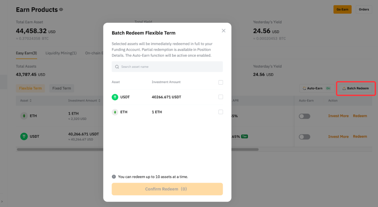 ステップ3:詳細を確認し、「償還を確定」をクリックして償還を完了します。「一括償還」ボタンを使用すれば、一度に最大10種類の資産を償還することもできます。